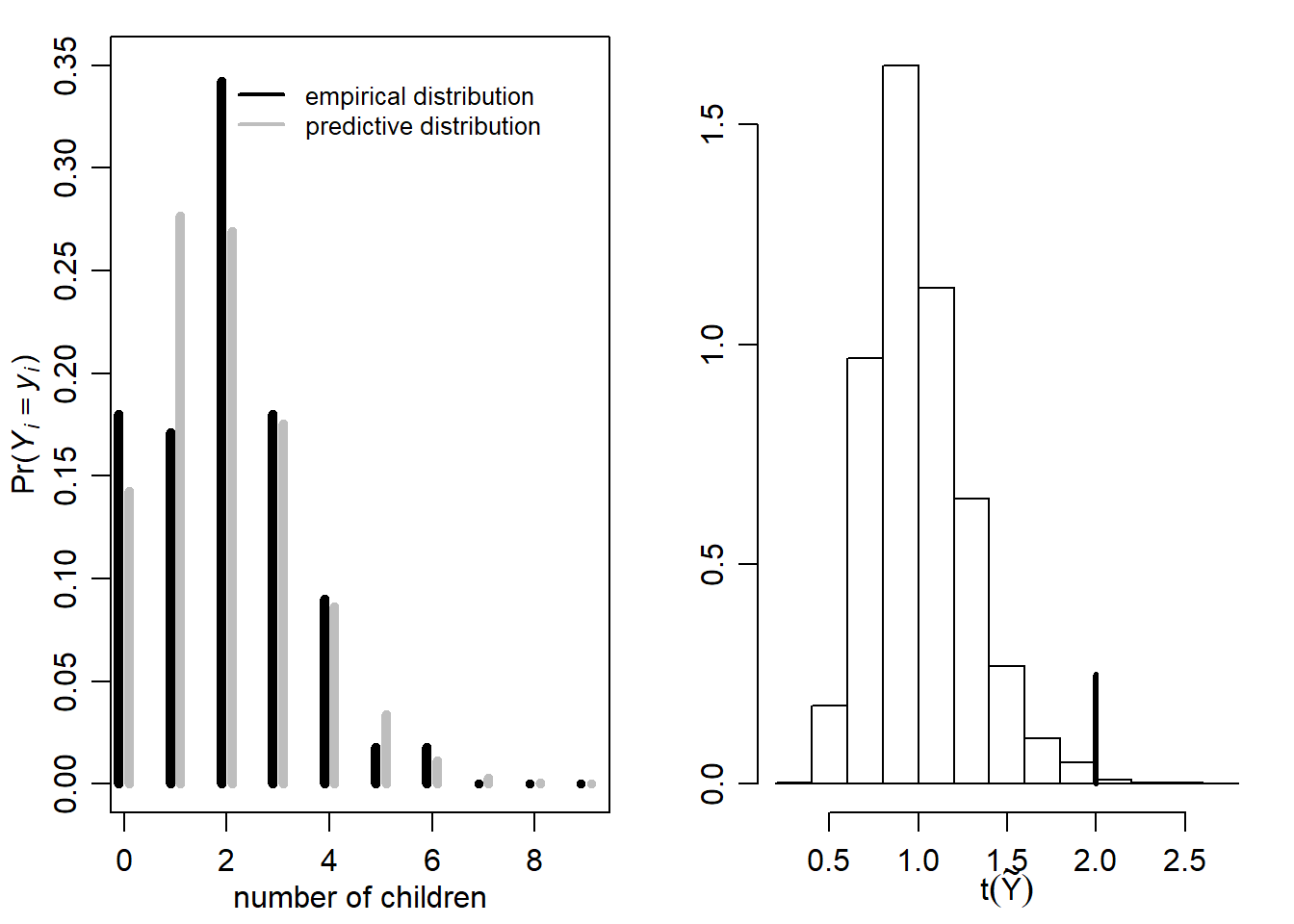 $Pr(\tilde{Y}=\tilde{y})$$\theta$์ ๋ํ ์ฌ์ ํ๋ฅ ๋ถํฌ๊ฐ ๊ด์ธก๊ฐ๋ฅํ ๋ฐ์ดํฐ$\tilde{Y}$์ ๋ํด ํฉ๋ฆฌ์ ์ธ ๋ฏฟ์์ ๋ํ๋ผ ์ ์๋์ง ํ์ธํด๋ณด๋ ์ฉ๋๋ก ํ์ฉ๊ฐ๋ฅํ๋ค.